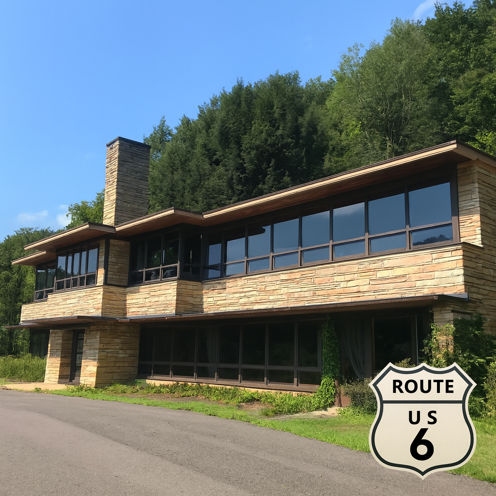 Winding through Pennsylvania’s rugged hills, US Route 6 is more than asphalt and mile markers: it’s a thread linking landscapes, small towns, and architectural stories that often go unnoticed. Amid the forests and river valleys lies Lynn Hall, perched on the edge of the Allegheny Mountains, a building that seems to grow from the land itself. Lynn Hall is a rare surviving example of organic modern architecture in a rural roadside setting, blending Mid-Century Modern ideals with regional materials, craftsmanship, and visionary design. Its story is one of ambition, decline, restoration—and a reminder of how much the architecture of travel and place matters in shaping America’s cultural landscape.