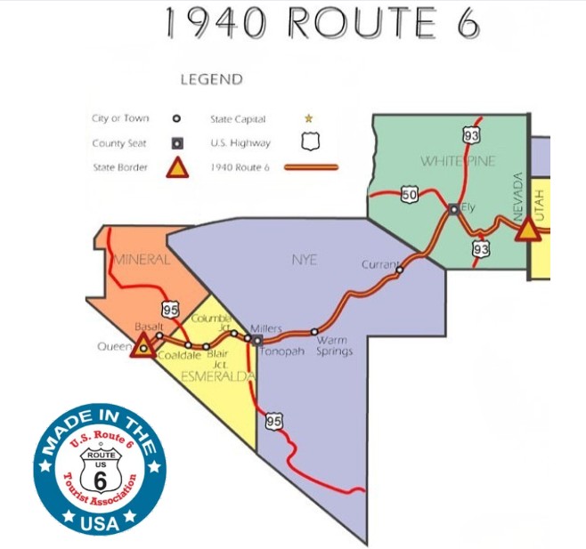 Nevada’s distinctive shape on maps, wide at the north and south and narrowing in the middle, becomes especially apparent on this route. Route 6 cuts across that narrow waist, reinforcing how geography has always shaped travel, settlement, and survival here.