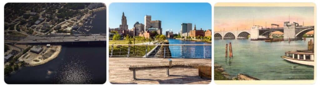 The Washington Bridge carries US Route 6 across the Seekonk River into Providence. Though often associated with Massachusetts, this crossing has been part of Rhode Island since boundary changes in 1862.